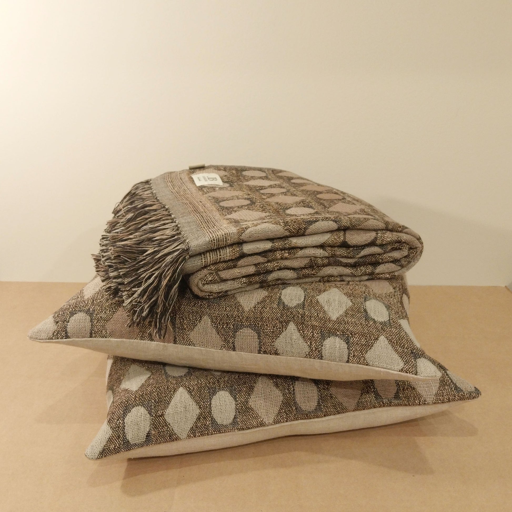 Manta decorativa + 2 Fundas de cojín 45x45cm.